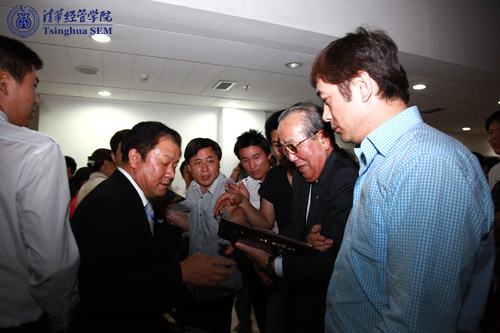 演讲结束后,现场观众踊跃提问。有人问到“企业应该学习杰克韦尔奇式的美国经营之道还是日本的管理哲学”,稻盛先生坦率地说,美国有先进的管理科学,这些方面可以向美国学习,而管理哲学和思想还是要从博大精深的中国文化中汲取营养。