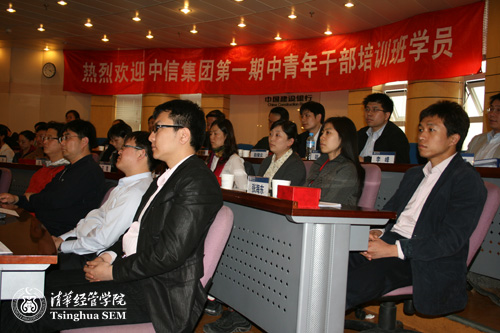 历时15天的“中信集团第一期中青年干部培训班”于2009年4月22日圆满结业。中信集团公司董事、组织部部长、人事教育部主任郭克彤,副主任唐岚,清华经管学院党委书记杨斌,高级管理培训中心学术主任、培训班责任教授程佳惠出席了当天在学院举行的结业仪式。