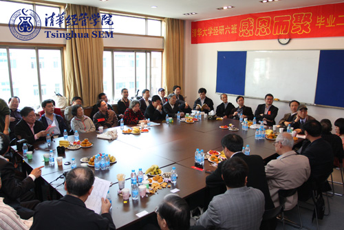 全国人大代表、中国社会科学院数量经济与技术经济研究所原党委书记郑玉歆代表经硕1979级校友发言。他表示,自己能够进入清华攻读研究生,得益于30年前的改革开放,也因为改革开放,学院发生了日新月异的变化,取得了令人瞩目的成绩。他感慨地说,同班同学在30年前是风华正茂的青年学子,目前却都已值退休年龄,为了实现为祖国健康工作50年的目标,希望大家利用所余时光,充分发挥余热,努力为社会多做贡献。校友们一起追忆30年前学习时的趣闻,畅谈国家改革开放30年的巨大成就,交流中国经济社会实践科学发展的对策与展望,欢声笑语,情谊融融。