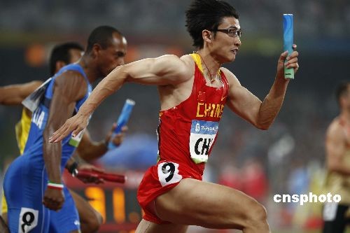 2008年8月21日,“眼镜飞人”胡凯在比赛中。中新社发