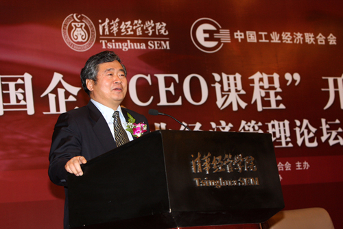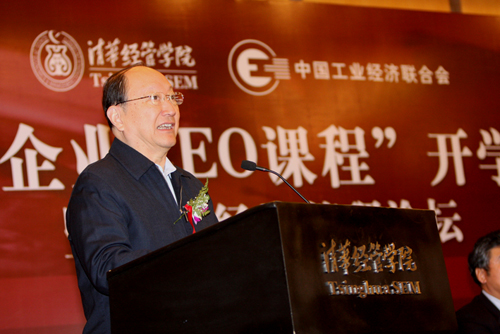 中国企业CEO课程开学典礼暨“工业经济管理论坛”是由中国工业经济联合会、清华大学经济管理学院联合举办,中国工业经济管理研修学院承办的。第十届全国政协副主席、中国工程院院长、中国工业经济联合会会长徐匡迪,中国工业经济联合会常务副会长孙树义,清华大学校务委员会副主任何建坤,清华经管学院院长钱颖一,中国工业经济联合会秘书长吴敦廉和该会副秘书长、中国工业经济管理研修学院副院长荣剑英等出席。开学典礼由中国工业经济管理研修学院常务副院长、清华经管学院高级管理培训中心(EDP)主任薛镭主持。