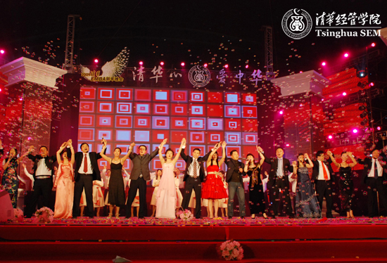 1月10日晚,2009清华EMBA迎新晚会在河北香河“天下第一城”金色大厅隆重举行,清华EMBA北京同学会同时成立。清华大学经济管理学院院长钱颖一,学院前任院长赵纯均,学院党委书记杨斌,常务副院长陈国青,副院长、EMBA项目主任廖理,学院党委副书记朱岩、院长助理朱恒源,以及部分EMBA项目老师出席,EMBA项目在读的07、08级12个班级以及清华—INSEAD双学位全英文EMBA项目、第四期清华—花旗媒体班、校友国学研修班等1000多名同学参加了晚会。