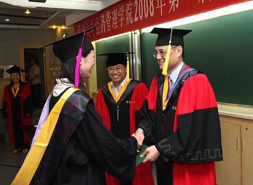 清华大学经济管理学院经济学双学位项目(以下简称“经双”)于2006年开办,面向经管学院以外的清华大学各院系全日制本科在校生。2008年7月4日,首届“经双”班的61名同学在完成经济学双学位的课程要求后,获得经济学第二学位。另外还有5名学生取得了经济学辅修专业证书,另5名选择继续攻读经济学学士学位。当天,清华经管学院首届经济学双学位毕业典礼在经管学院隆重举行。清华经管学院院长钱颖一和经济系系主任白重恩一起,为61位来自清华大学其他院系的本科生颁发经济学第二学位毕业证书。