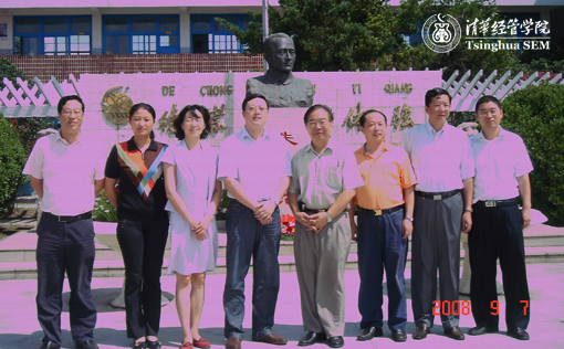 9月7日,清华大学经济管理学院党委副书记陈章武教授等一行,来到江苏省通州市余西乡,参观访问了以老一辈无产阶级革命家、清华大学经济系校友朱理治学长命名的理治小学,并与通州市副市长、教育局局长、理治小学校长等当地干部群众座谈。