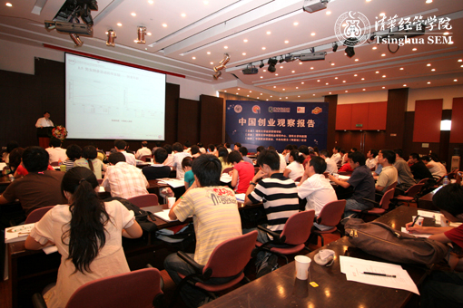 清华经管学院技术经济与管理系主任、中国创业研究中心副主任高建教授和该系程源副教授分别就“中国的创业转型和就业效应”、“中国的创业环境”、“机会和能力”等进行报告发布。