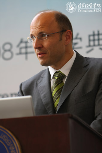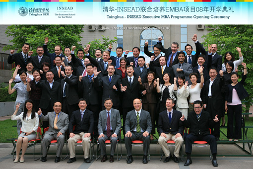 清新时尚的场地布置,新颖丰富的活动形式,来自全球的商界精英,2008年6月6日,清华-INSEAD联合培养EMBA项目第二届开学典礼在清华经管学院舜德楼隆重举行。清华经管学院院长钱颖一、副院长兼EMBA项目主任廖理,INSEAD EMBA项目院长Charlie Galunic等出席开学典礼。