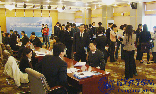 3月20日下午,由清华经管学院职业发展中心(CDC)主办的2008春季MBA校园集体招聘会在学院舜德楼多功能厅举行,共有包括中纺、中国中化、中广核、李宁、奇瑞、米其林、东亚银行、福禄克、法国东方汇理银行等在内的11家国内外知名企业参会。